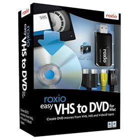 Roxio Easy VHS to DVD for Mac includes everything you need to easily transfer video from VHS, Hi8, V8 or analog camcorders to DVD. Perfect for digitizing and protecting home videos on outdated media. Easy VHS to DVD for Mac supports most analog camcorders, VCRs and even DVD players. Capture video at full DVD-quality resolution. Add Hollywood style menus and chapters for impressive results. Edit your captured movies in iMovie to add titles, transitions and other edits. Great for transferring videos to iPod or PSP too! Post finished videos to YouTube or your favorite social networking sites